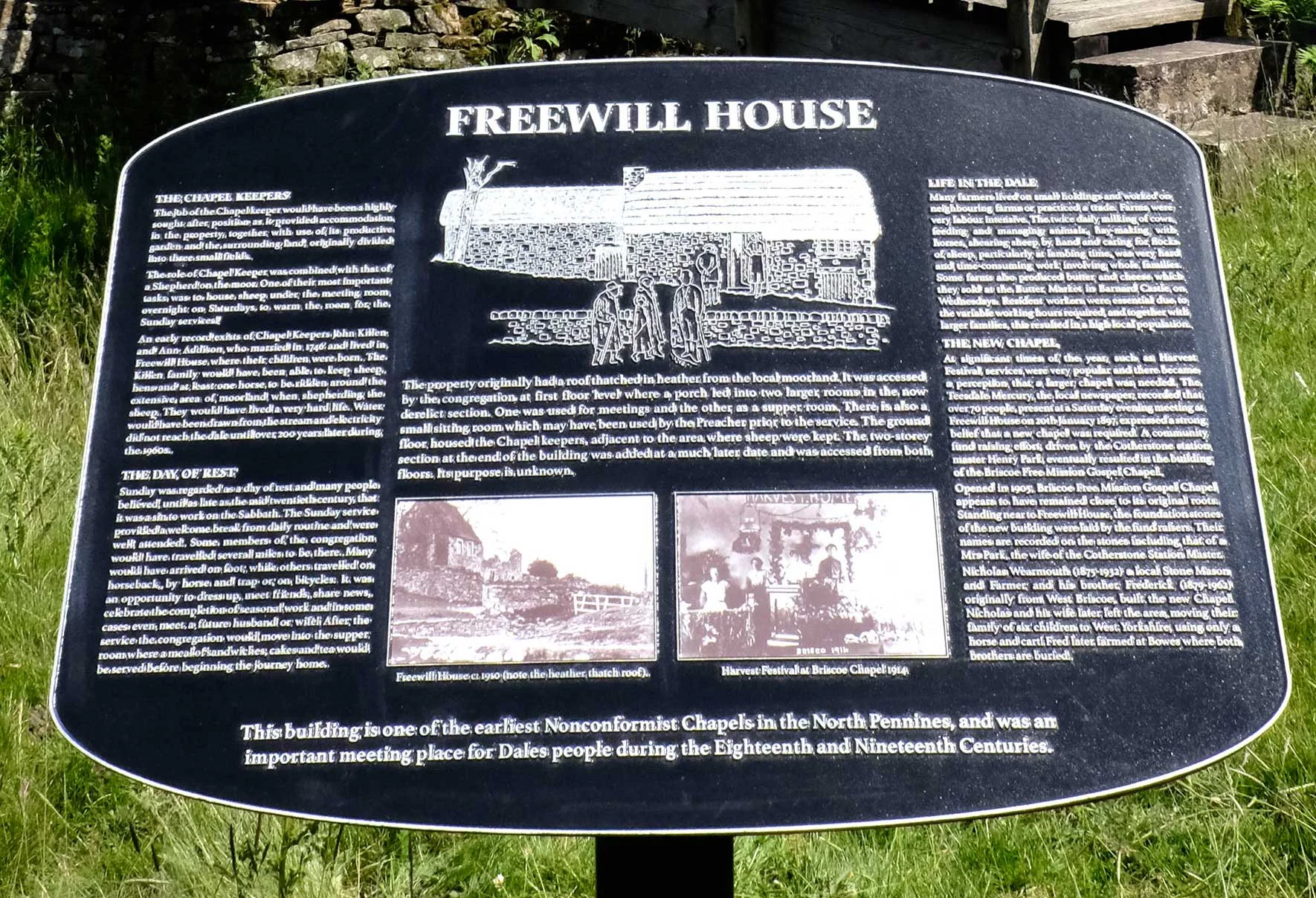 An early record exists of Chapel Keepers John Killen and Ann Addison who married in 1746 and lived in Freewill House where their children were born. The Killen family would have been able to keep sheep, hens and at least one horse to be ridden around the extensive area of moorland when shepherding the sheep. They would have lived a very hard life. Water would have been drawn from the stream and electricity did not reach the dale until over 200 years later during the 1960s.