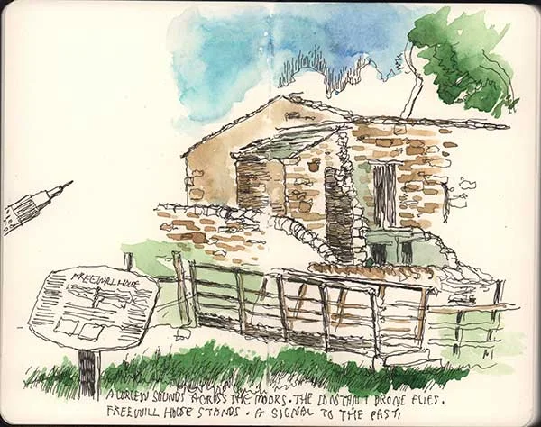 A CURLEW SOUNDS ACROSS THE MOORS / TO THE CONSTANT DRONE OF FLIES / FREEWILL HOUSE STANDS / A SIGNAL TO THE PAST.